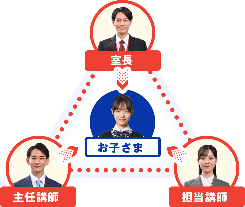 室長は年間50回以上の研修を受講し、指導方法の改良・改善に努めています。より高い成果を求めて、室長と講師が連携してお子さまをサポートします。