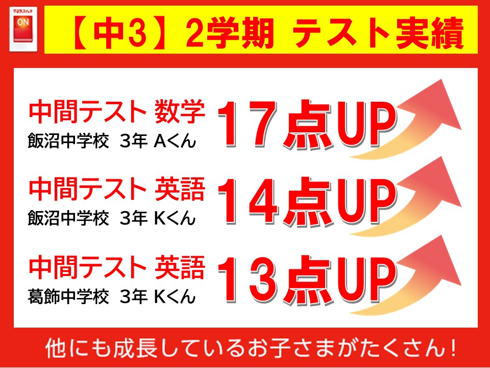 苦手教科を克服し、得意科目を伸ばすことができました!!
