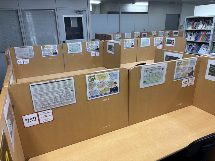 →休憩スペースで食事もとれるし、隣との席の間隔も広くて集中できる。第一志望の大学目指してがんばります。