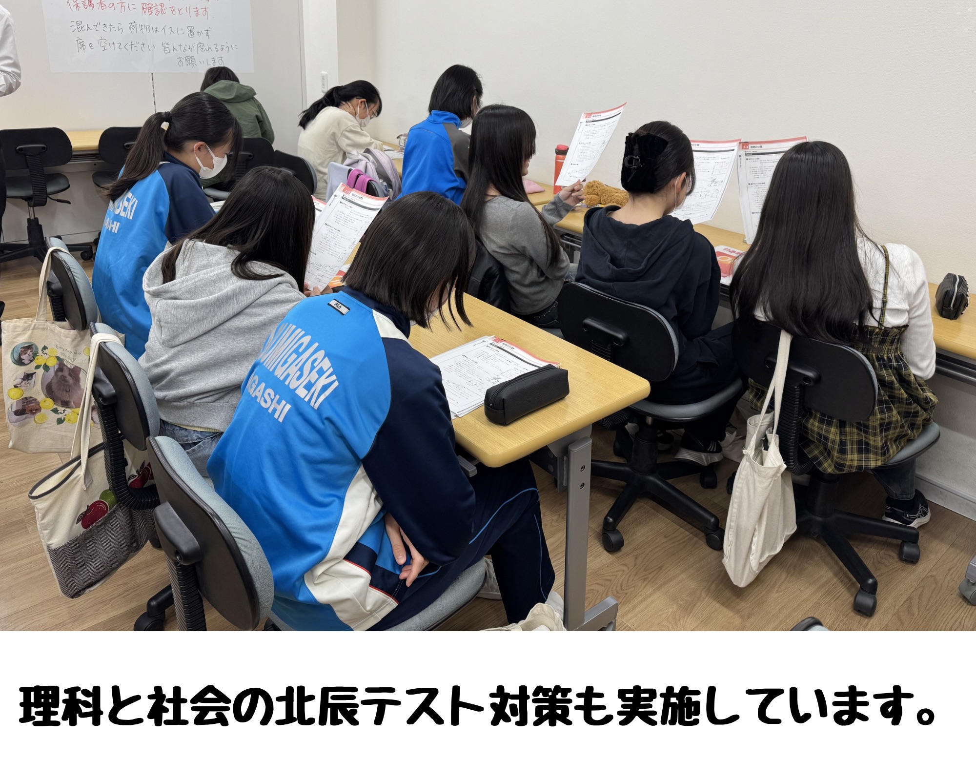 高校受験に向けて、定期テスト対策はもちろん北辰テスト対策・各種検定対策にも力を入れています。