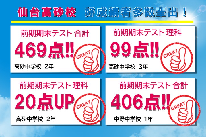 その他にも多くの生徒さんが高得点獲得・成績向上しております!