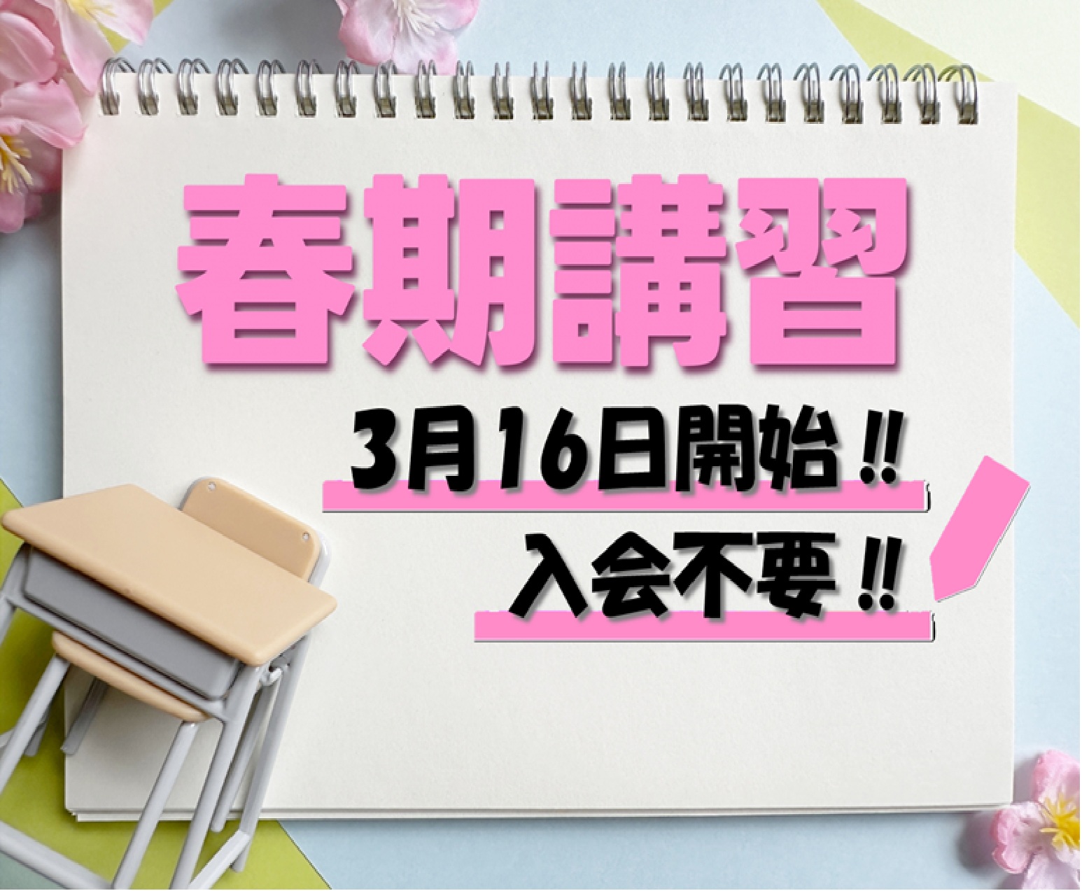 3月16日より春期講習開始‼ 講習の受講は入会不要‼ 新学年に向けてスタートダッシュを決めよう‼