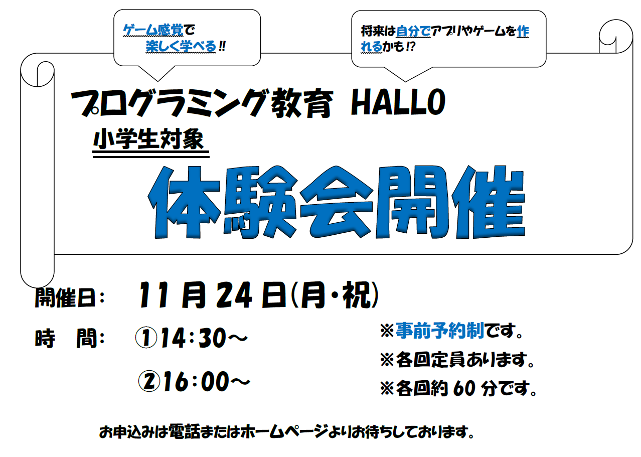 プログラミング体験会を開催致します。(定員制です。)