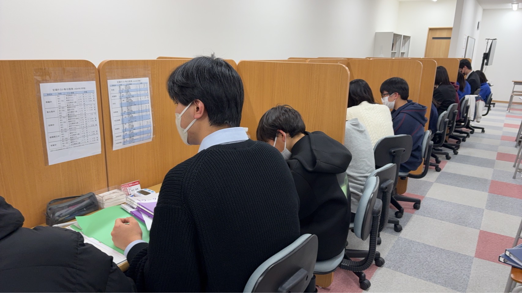 寒さ厳しい日が続いています。冬は風邪やインフルエンザなどにかかりやすくなります。バランスの良い食事や着るものを調節したり、手洗いうがいを徹底するなど、予防のためにできることはいろいろあります。時間を有効活用するためにも、体調や生活習慣を整えましょう。学生の本業は勉強ですから、生活習慣の中で勉強する時間を中心にすることで、遊びの時間も活きてきます。勉強する時間となると学校がメインで、塾はサブ的な位置になります。 もちろん家で勉強するのも当たり前ですが、環境によってはなかなか集中して出来ないこともあるかと思います。 そこで学習環境にお悩みの方、スクールIE 荒牧校では自習室も完備していますので、いつでも気軽に使うことができます。 開校時間中であれば、いつでも使用いただき、わからないことは講師に質問することも可能です(ただし、講師が授業中の場合はタイミングをみて声をかけてくださいね)。 ぜひ自習室をご活用ください。