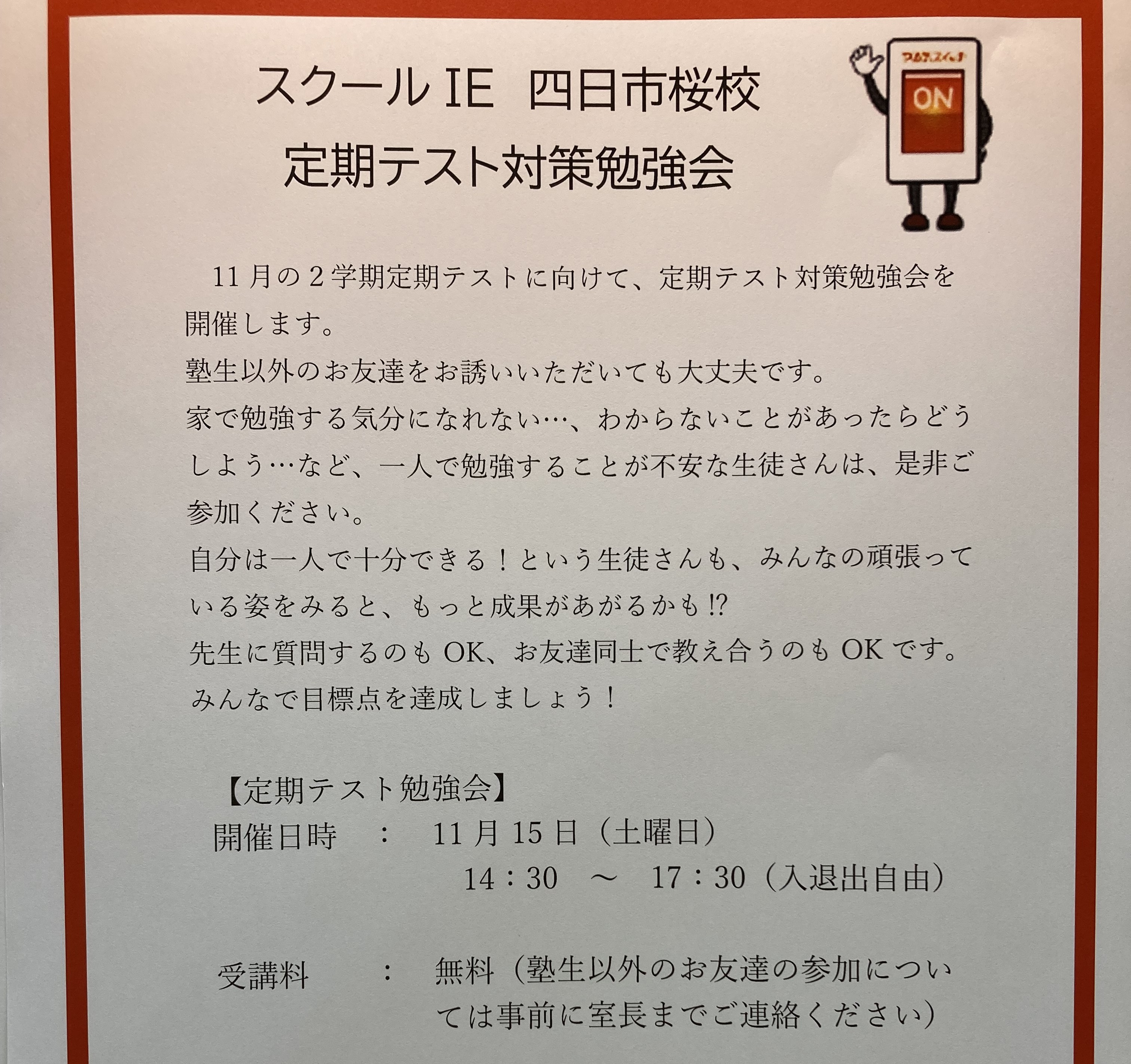個別指導塾のスクールIE 四日市桜校へようこそ!