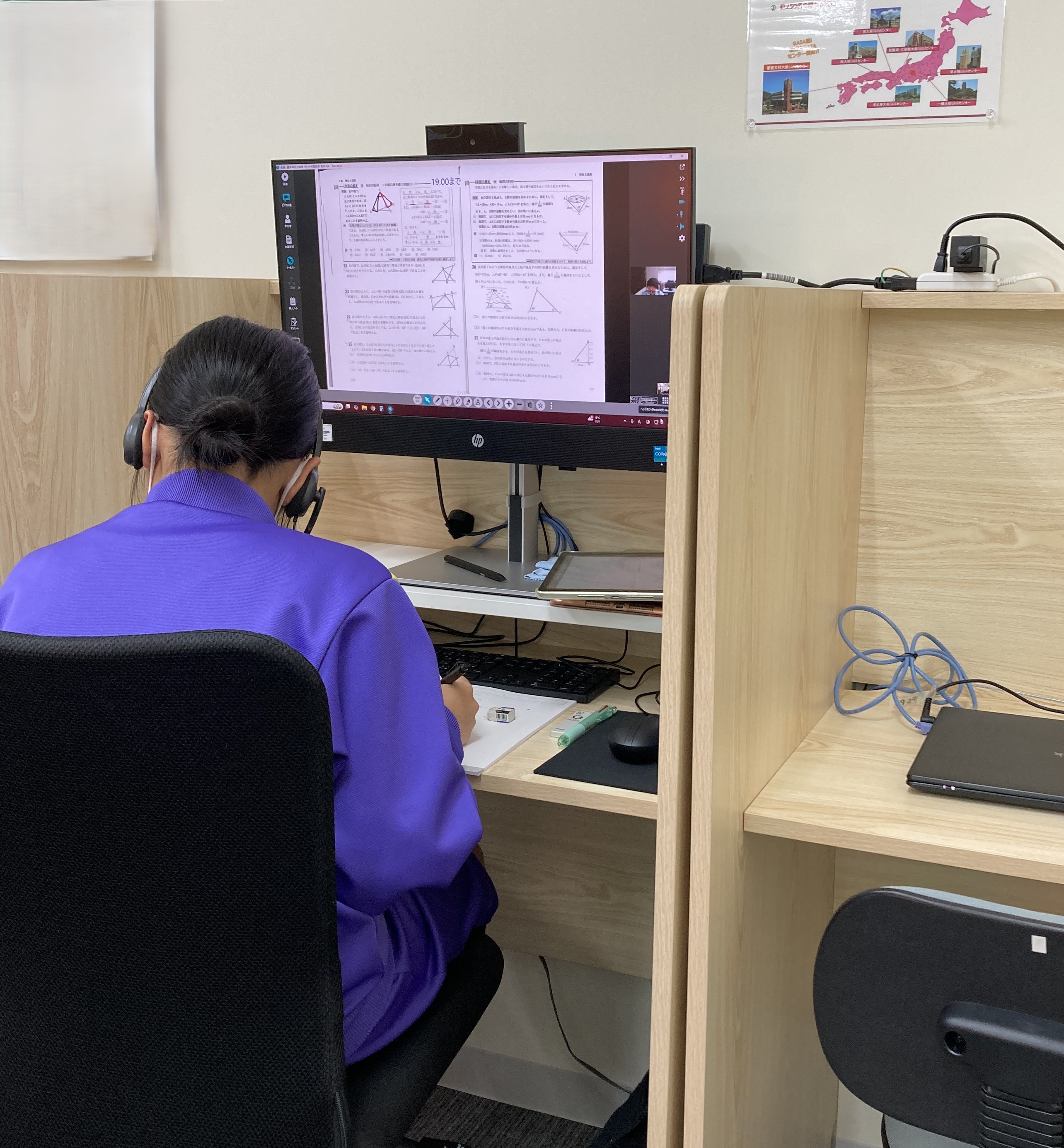 授業は当スクールに設置のパソコンとセンターの講師を繋いだ担任制個別指導(録画映像でなくライブ)となっているため、通常の授業と変わらず学校のプリントやテキストを使って授業を行うこともできます。