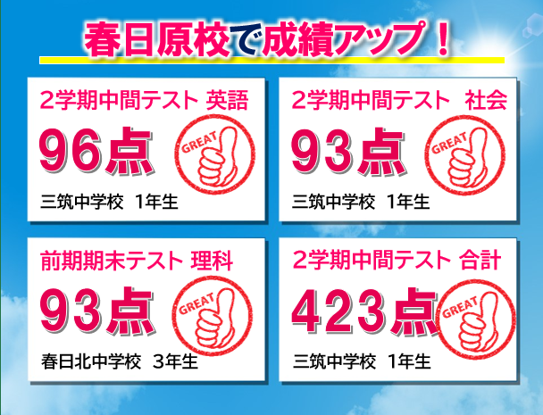 春日原校でしっかりと点数が取れています!