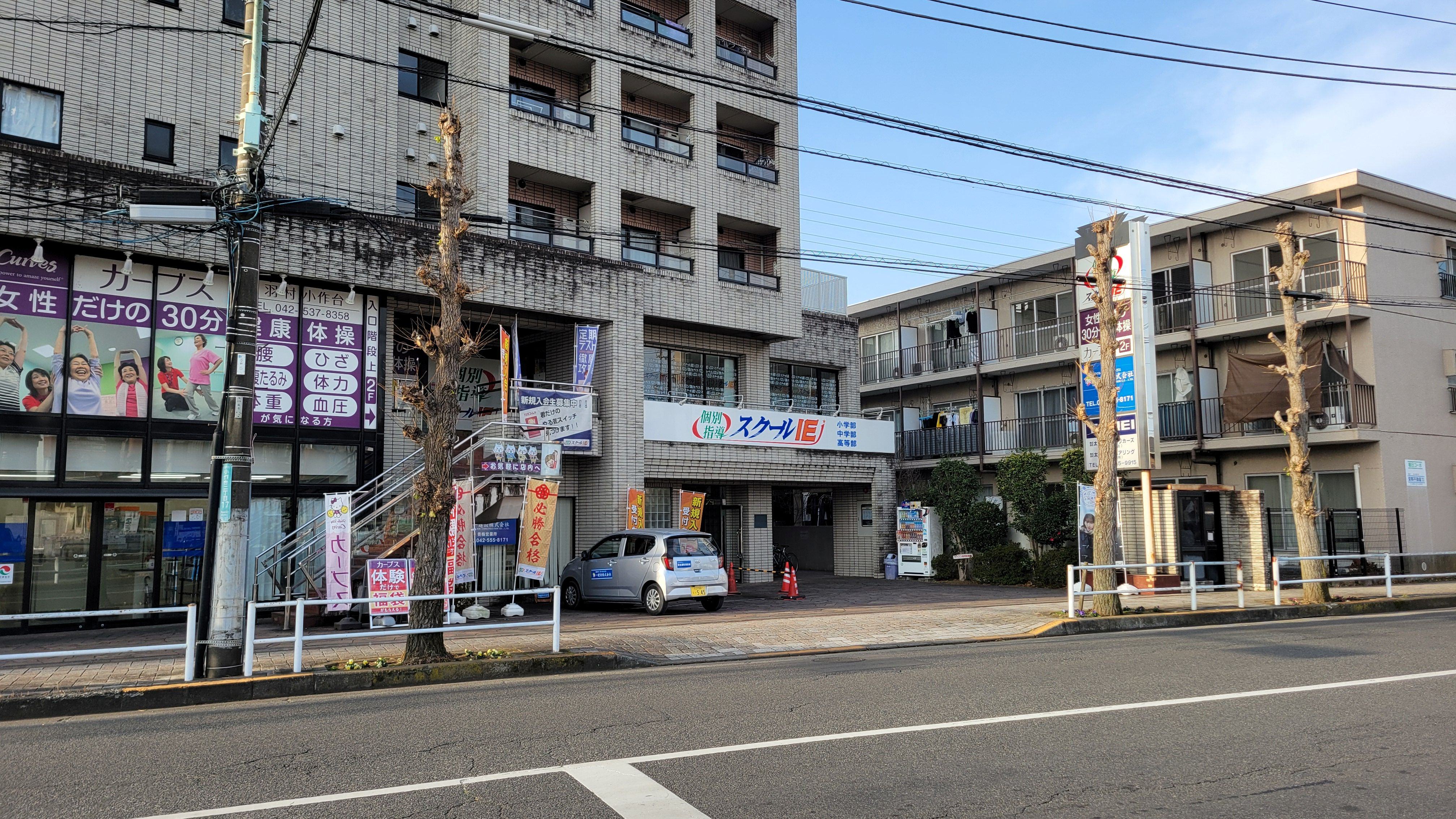 スクールIE 小作校は、小作駅東口ロータリーを直進、「小作駅北」交差点を左折していただくと200メートルほど先にあるセブンイレブンさんの、向かいのビルの2階にあります。