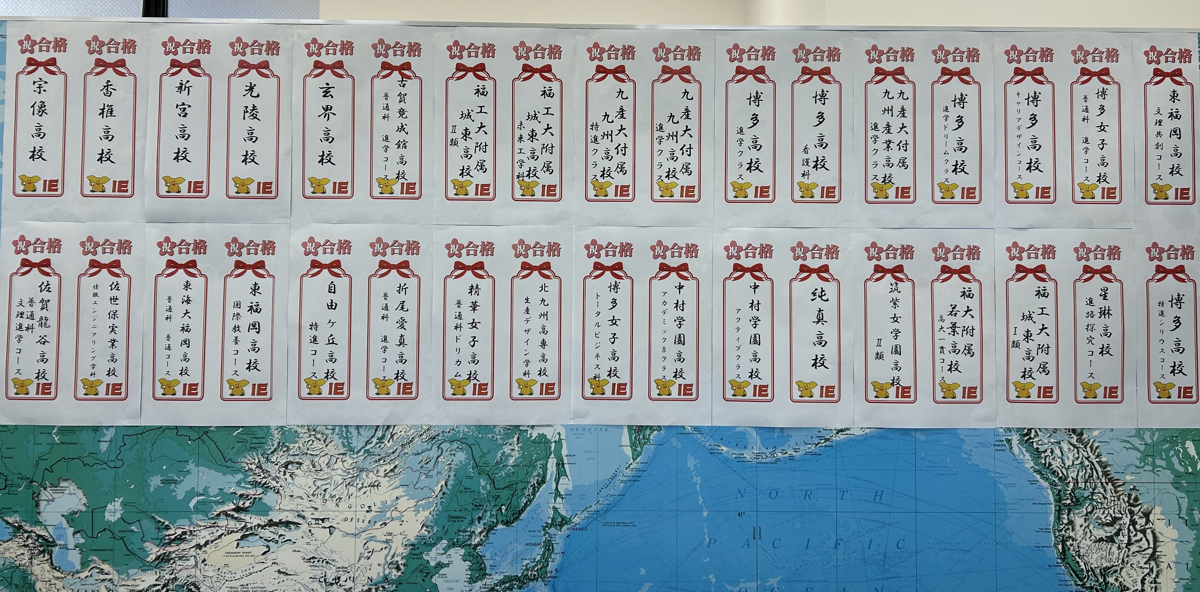 修猷館高校/福岡高校/香住丘高校(数理C含む)/新宮高校/香椎高校/古賀竟成館高校/光陵高校/玄界高校/魁誠高校/香椎工業高校/神奈川麻布高校/福岡大学附属大濠高校/筑紫女学園高校/筑陽学園高校/九州高校(S特進・特進含む)/福岡工業大学附属城東高校(1類特別選抜・2類特別選抜含む)/博多舞鶴高校(特進選抜)/大阪夕陽丘高校/雙葉学園高校/柳川高校/東海大学付属福岡高校/博多高校(シリウス含む)など