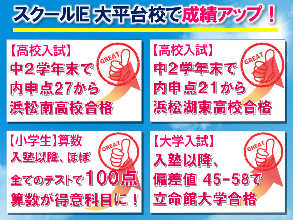 スクールIEホーム > 教室検索 > 静岡県の教室検索結果一覧 > スクールIE大平台校