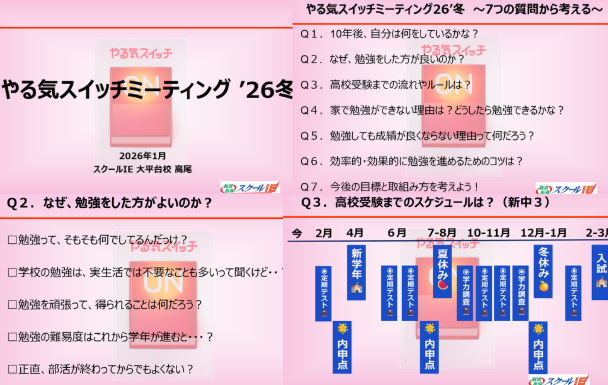 スクールIE大平台校の生徒が成長する秘訣は、定期的に実施される『やる気スイッチMTG』です。