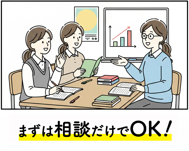 そんなお子さまの悩みに合った勉強方法や学習習慣のつけ方を、お子さまと一緒に考えていきます。