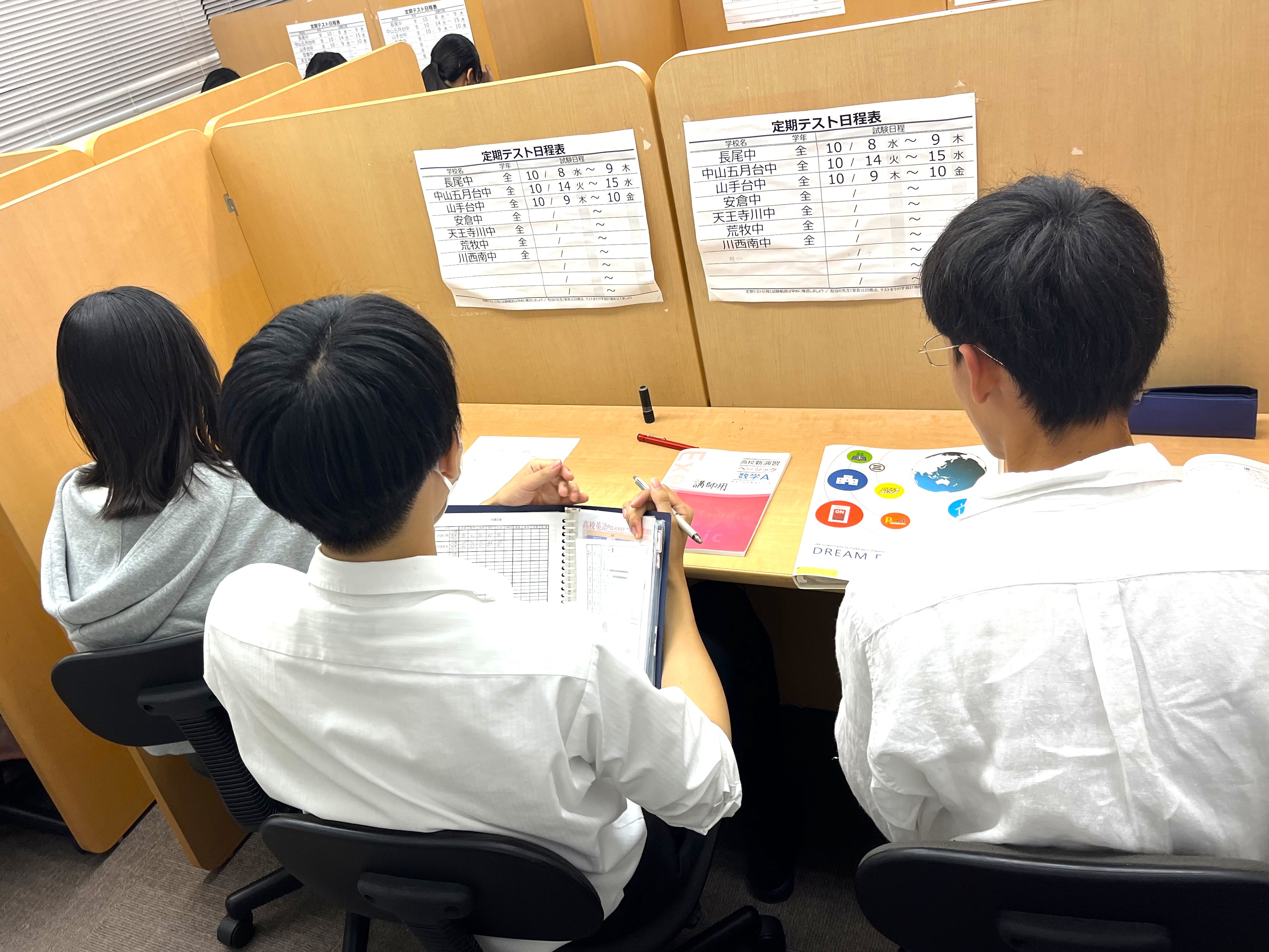 まずはお子様と一緒に面談にお越しいただき、定期テストに向けてご心配な点やご要望をお聞かせください。面談は随時行っておりますので、HPまたはお電話にてお問合せください!