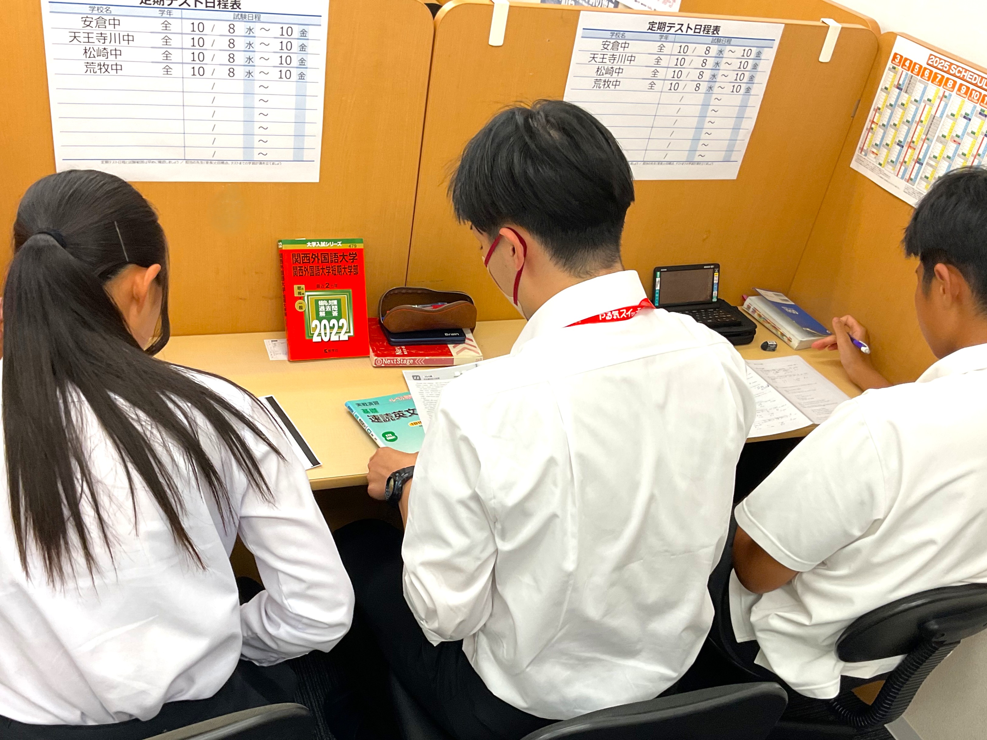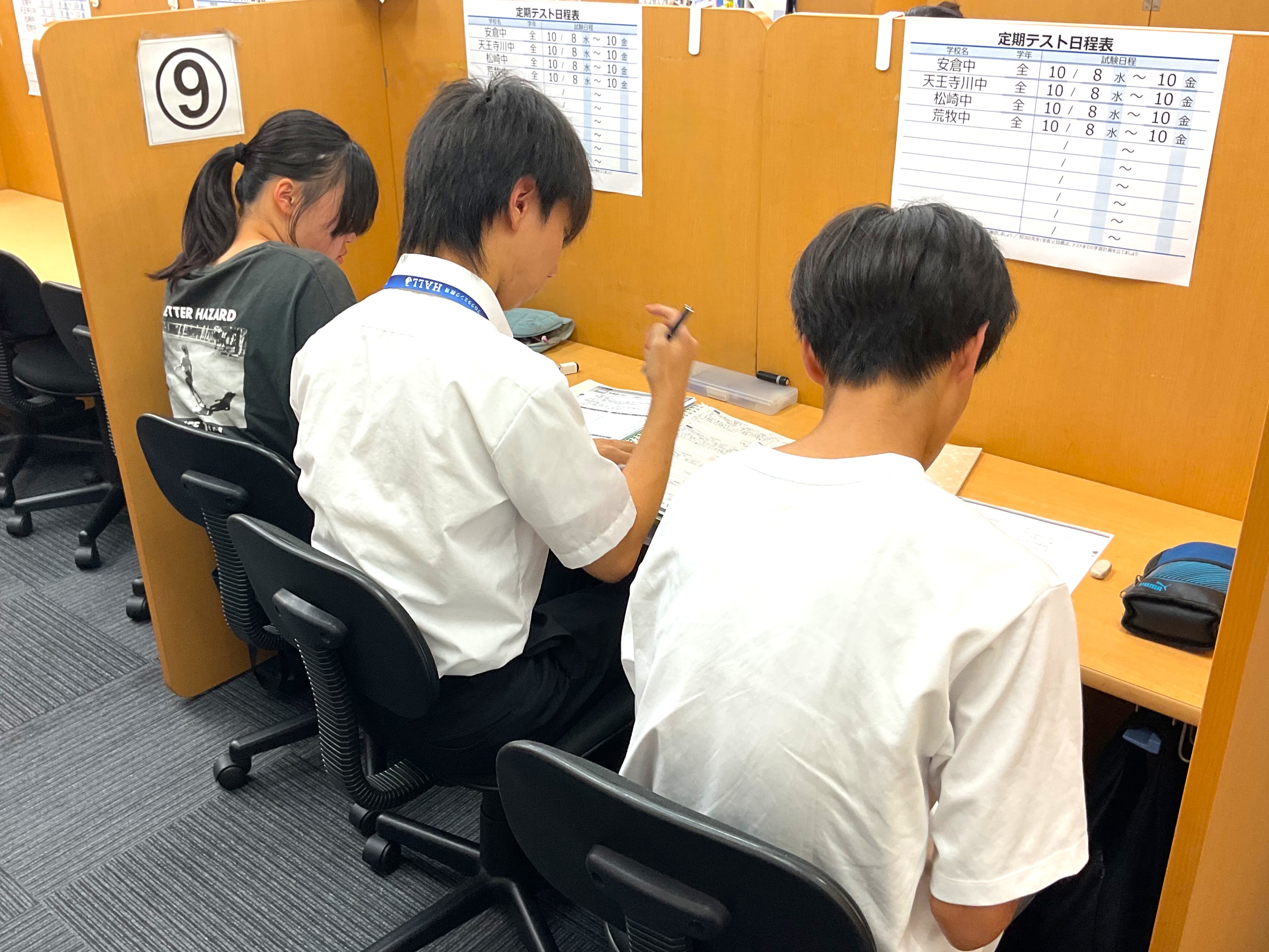 まずはお子様と一緒に面談にお越しいただき、定期テストに向けてご心配な点やご要望をお聞かせください。面談は随時行っておりますので、HPまたはお電話にてお問合せください!