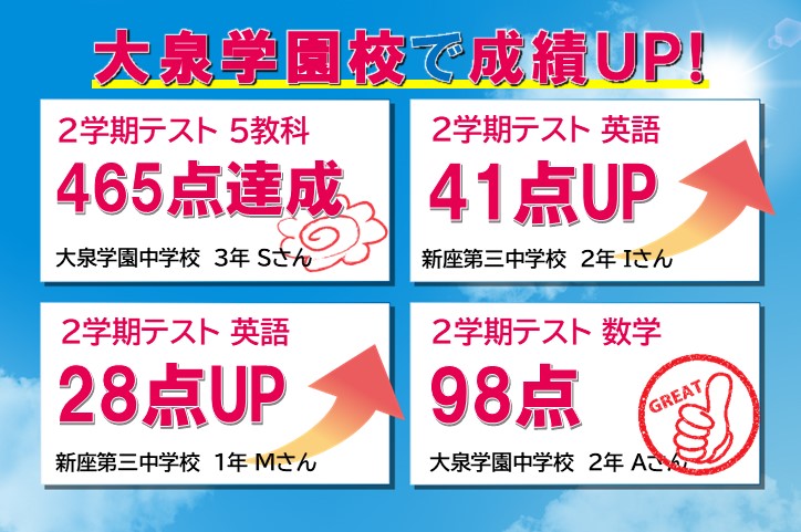 大学受験対策、定期テスト対策、中学受験、など、もちろん教務的な対策も他の塾さんには絶対に負けません。