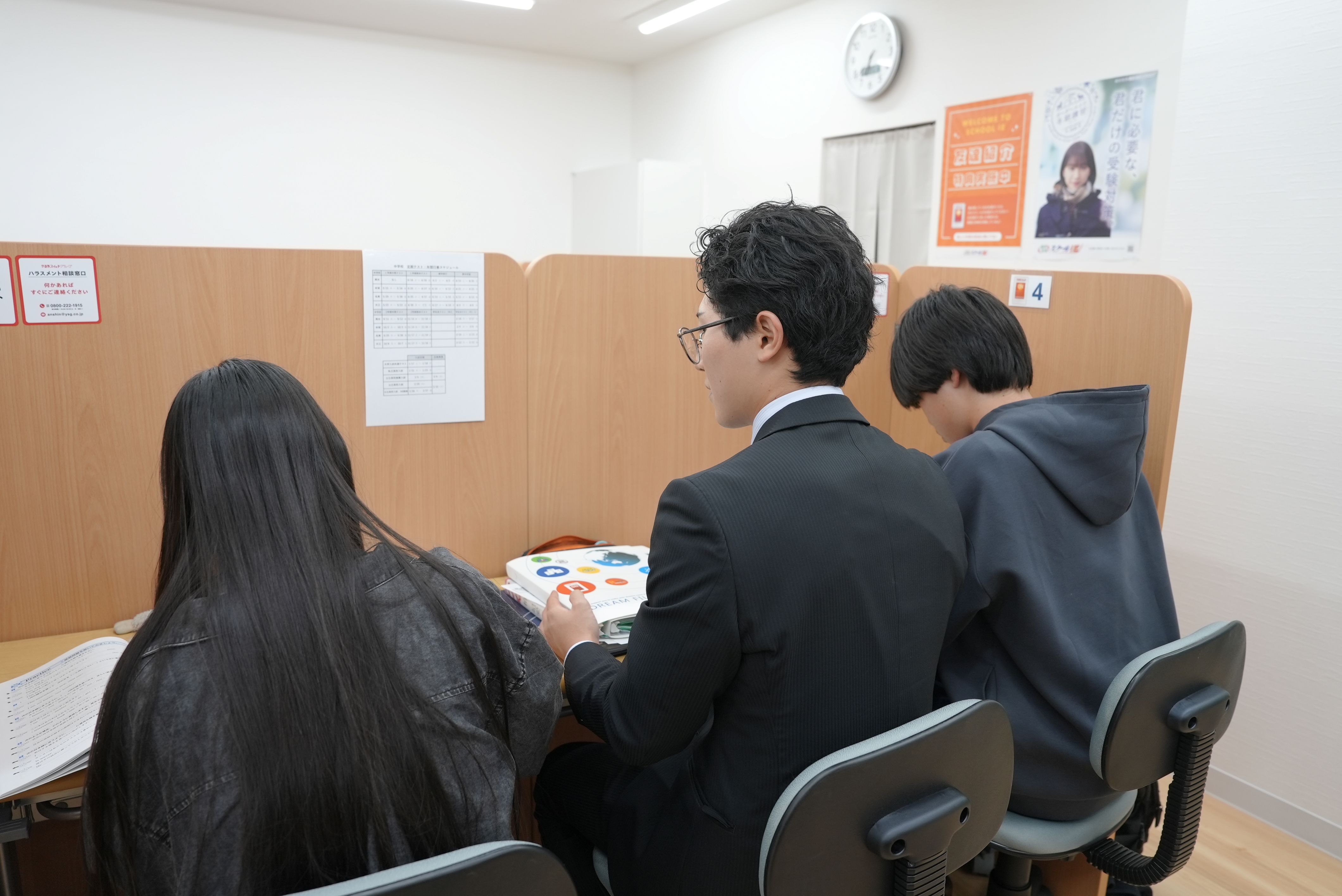 講師が隣に座って指導するため、分からないことがあればすぐに質問でき、安心して学習に取り組める環境です。