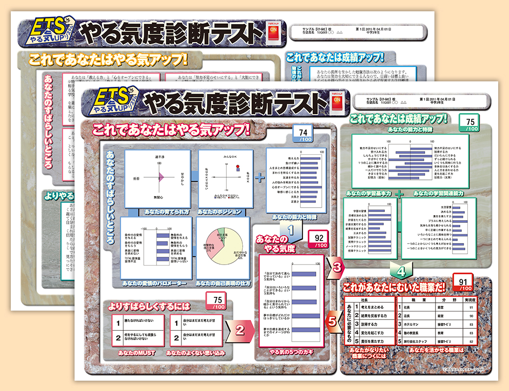 心理学に基づいた独自の個性診断テスト(ETS)でお子さまの個性・学習習慣・生活習慣を分析し、やる気が出る・やる気が続く指導方法と学習プランをご用意!また、お子さま一人ひとりに合わせて作る世界に一冊だけのテキスト(オーダーメイドテキスト)を使い、ムリ・ムダを一切なくして授業を進めていきます。
