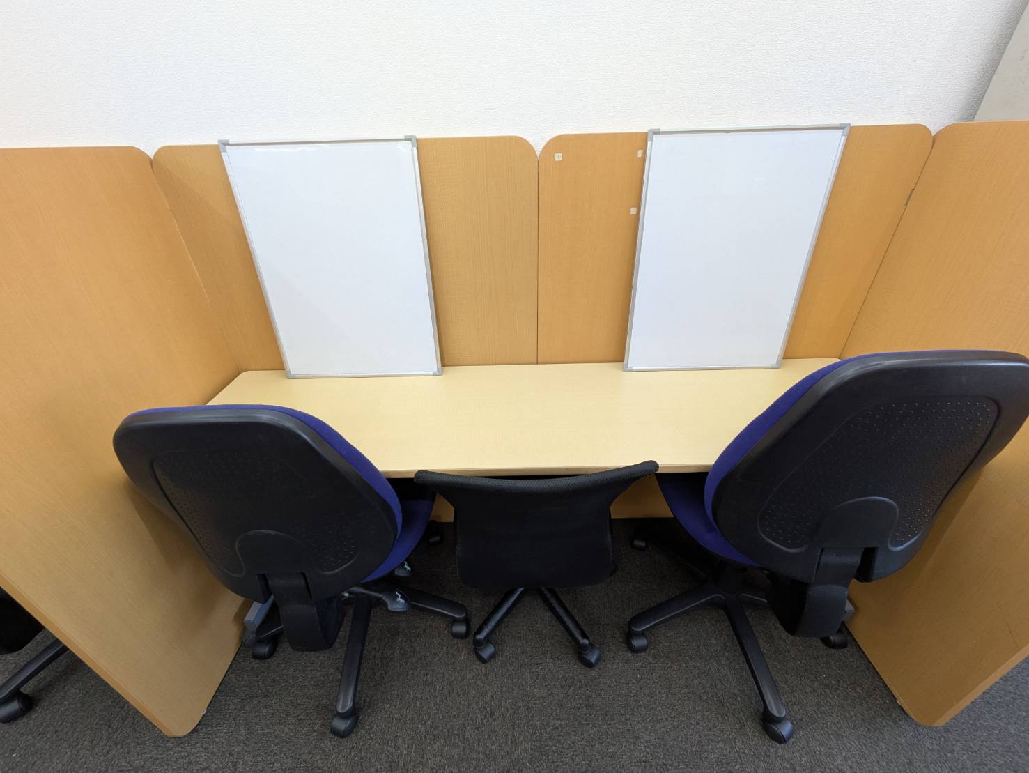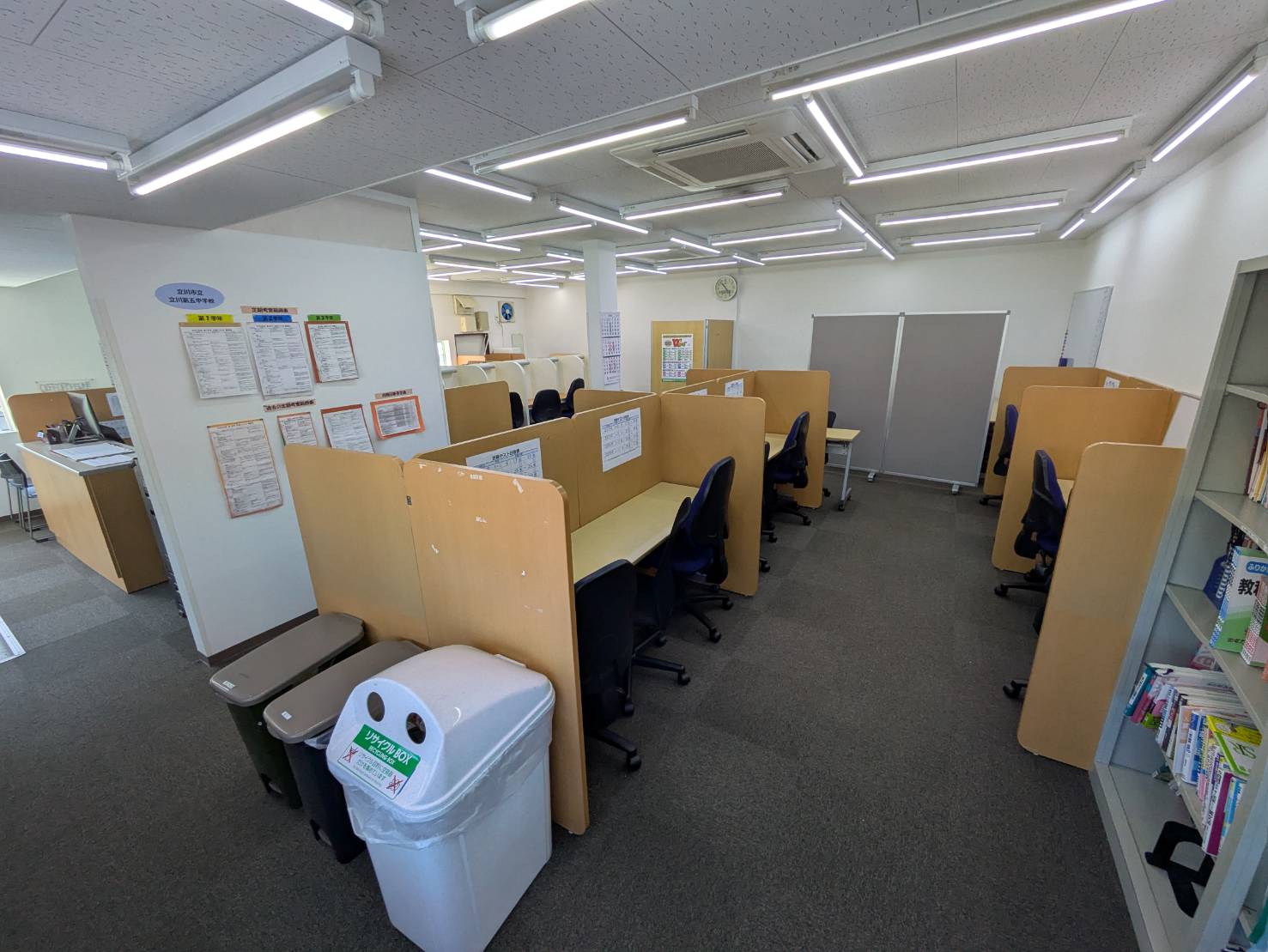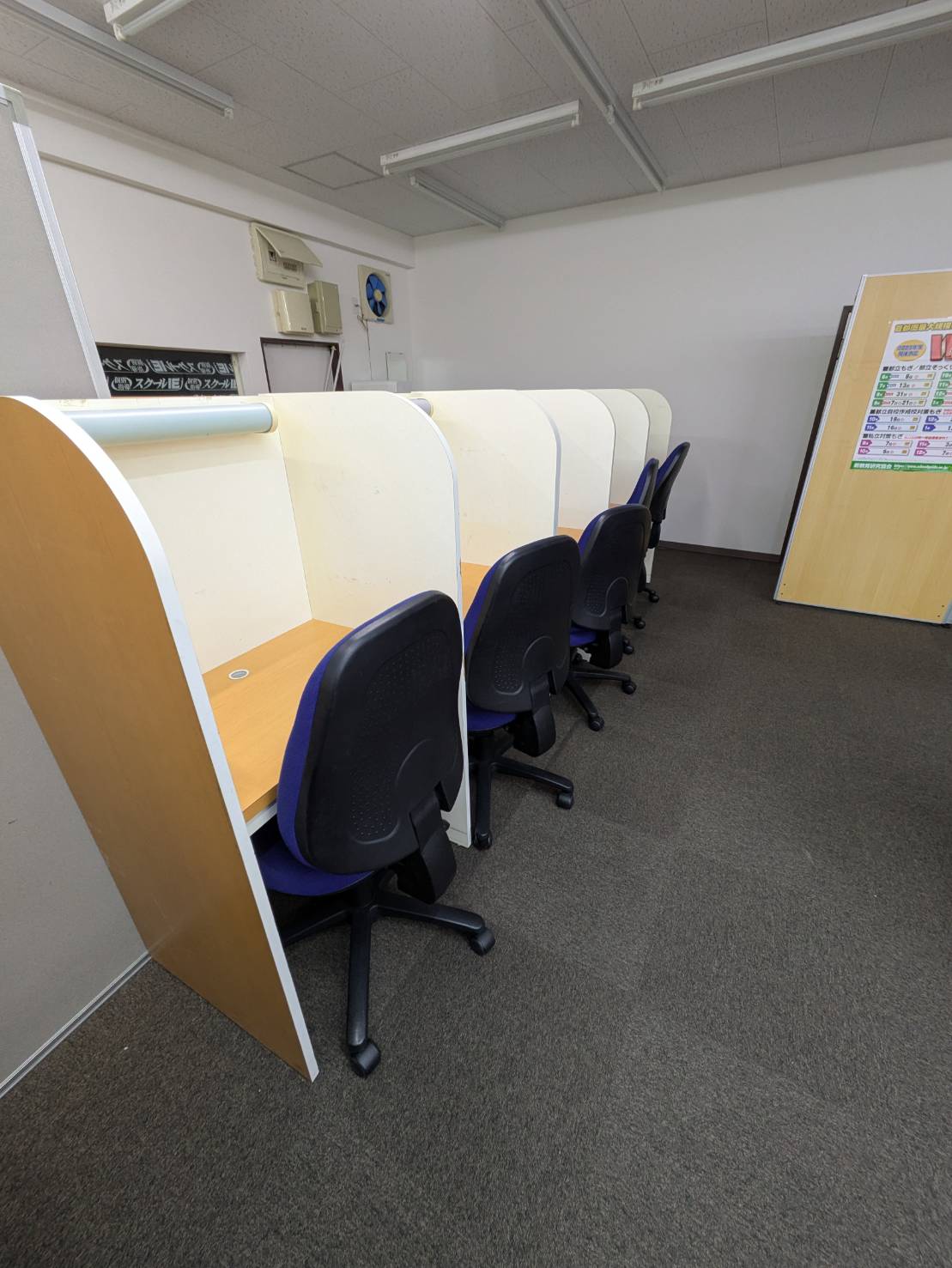 個別指導ブース、小集団授業ブース、自習学習ブースに分かれています!本教室は、狭いながらもブースごとに区分されていますので、生徒の皆さんが集中できる環境が整っています!