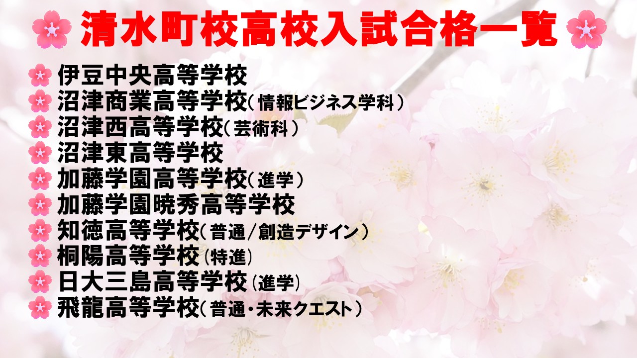 近隣高校「伊豆中央」「市立沼津」「加藤学園」「暁秀」「誠恵」「田方農業」「知徳」「桐陽」「日大三島」「韮山」「沼津工業」「沼津商業」「沼津城北」「沼津中央」「沼津西」「沼津東」「飛龍」「三島北」「三島南」等