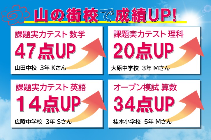 そして、何よりもやる気一杯のあなた達を厳しくあたたかく支えていきたいというスクールIE山の街校講師陣の熱い思いが力となることでしょう。
