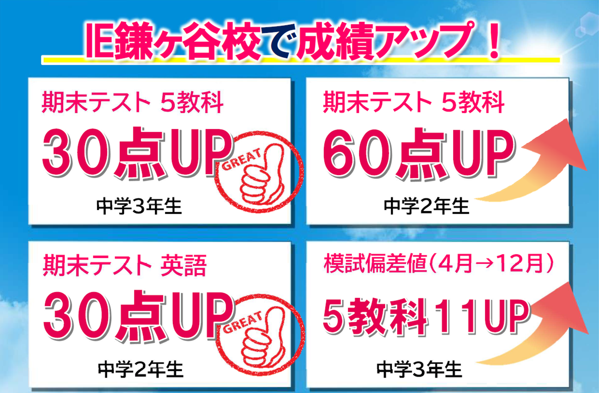 スクールIE 鎌ヶ谷校では、お子さま一人ひとりにあった《個性別指導》で【やる気】と【勉強のやり方】を高め、「宿題,家庭学習指導」、「AIデジタル教材」などの【学習量】で成績UPを全力でサポートします。
