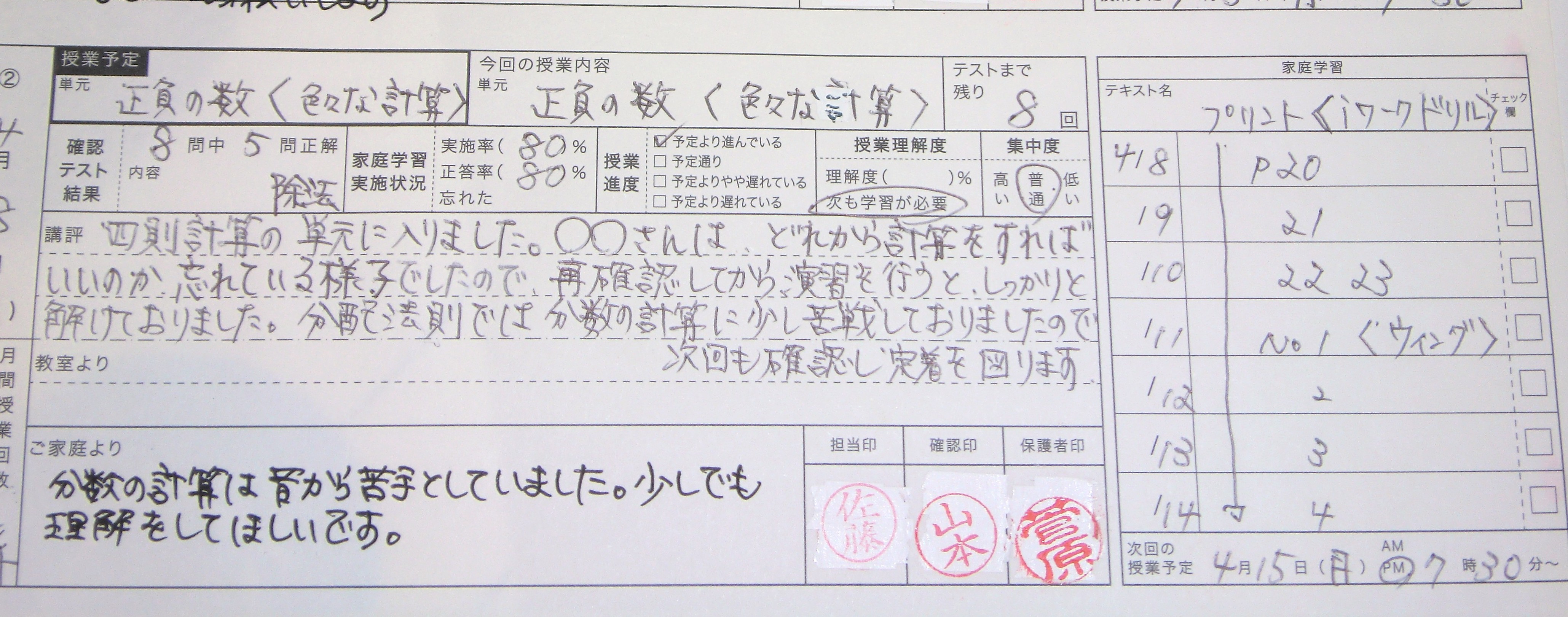 ノートにポイントを書いてくれるので、家での復習もかなりやりやすいです。点数も90点以上取れるようになり自信もついてきました。これからも頑張りたいです!