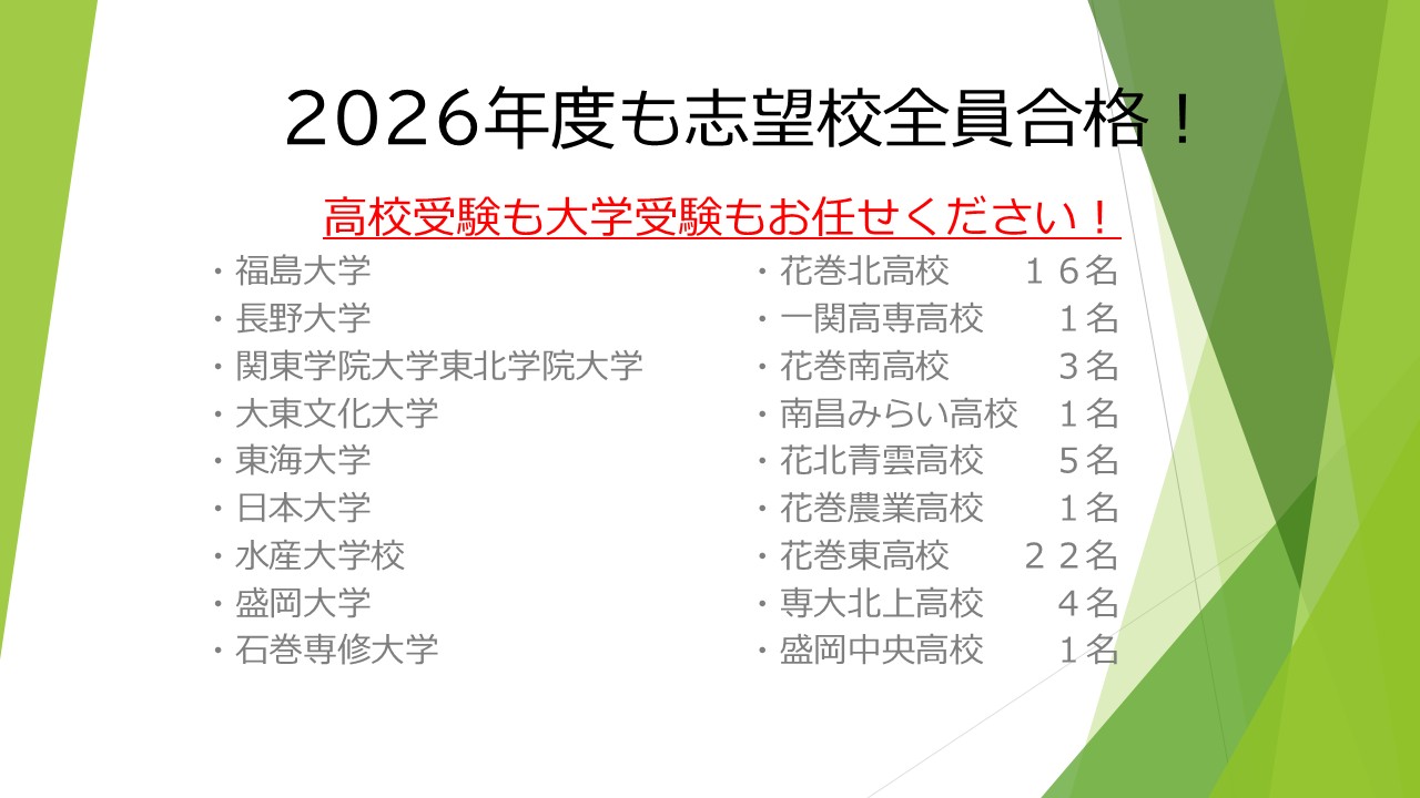 無料体験授業のお申し込みや学習相談はお気軽にお問い合わせください。 TEL:0198-21-5598
