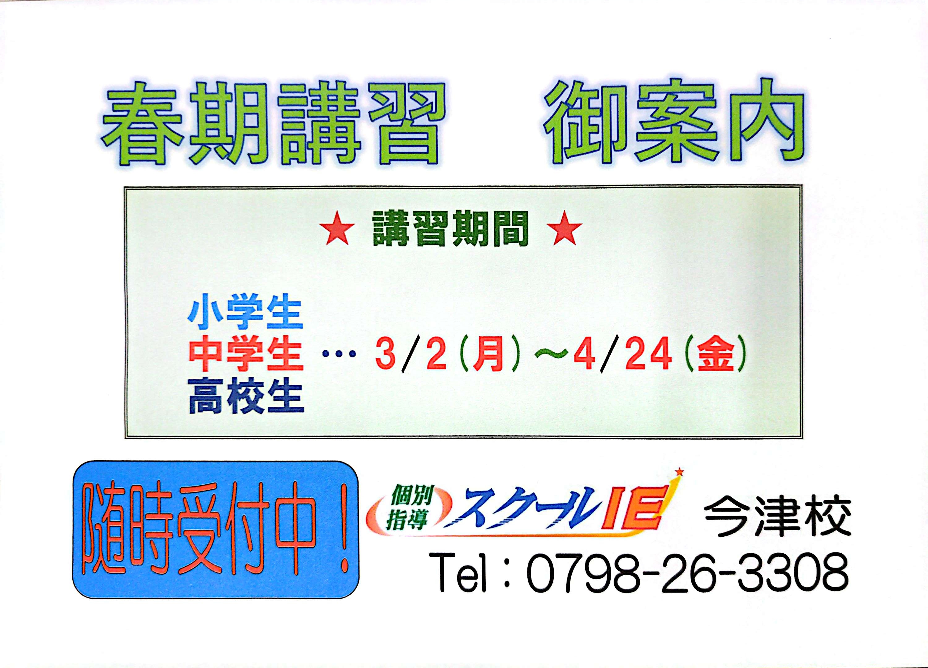 19:30~21:00※講習期間中は特別時間割を設定。(春期講習・夏期講習・冬期講習)
