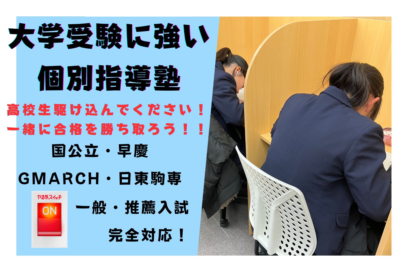 『大学入試の学習指導も、進路指導も、完全個別対応でサポートします!』