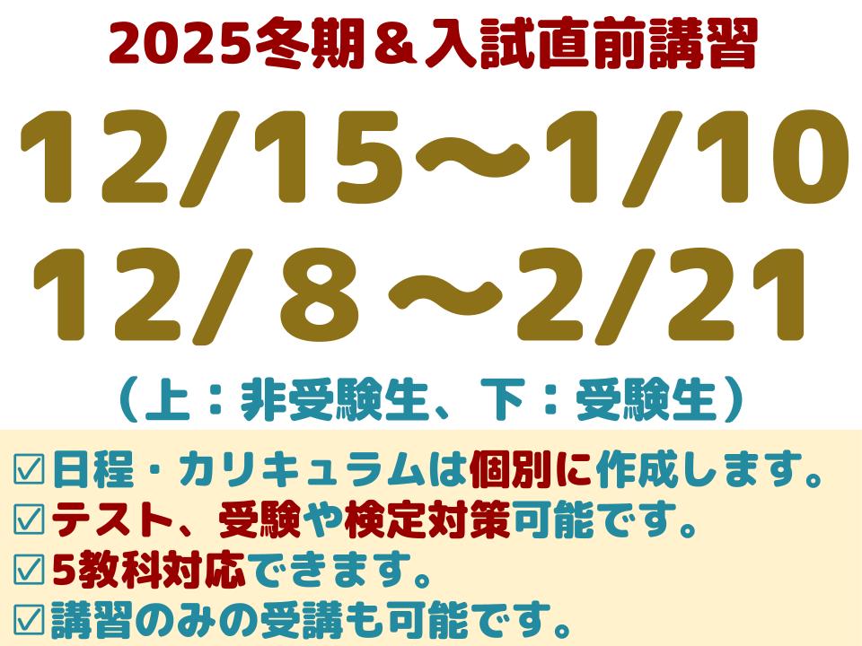 【期間(非受験生)】2025年12月15日(月)~1月10日(土)