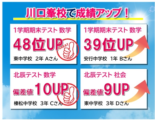 ✨中3女子Eさん 社 53➡62(9UP)理 57➡62(5UP)