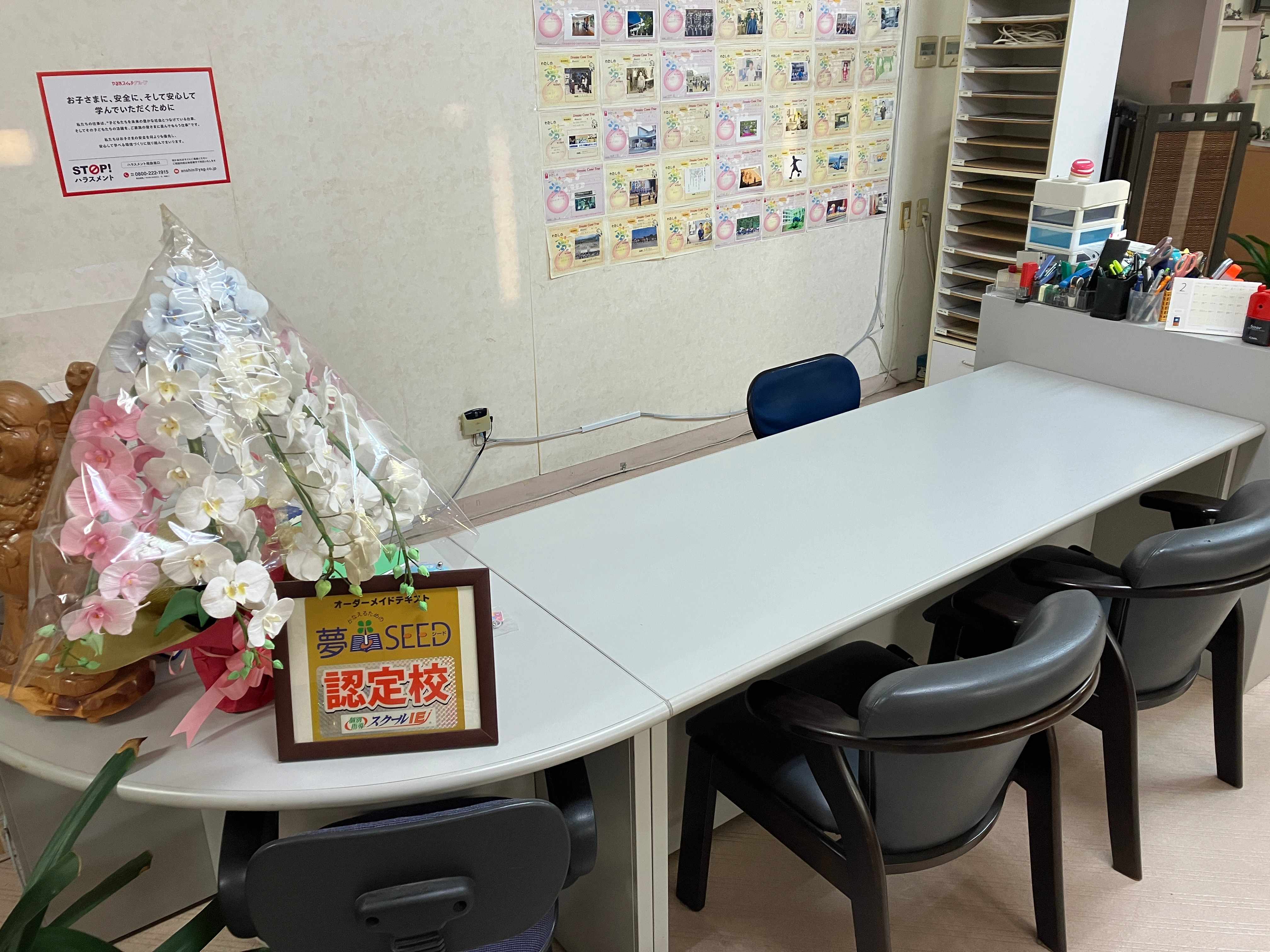 教室の受付です。こちらで学習相談・保護者面談をさせて頂きます。
