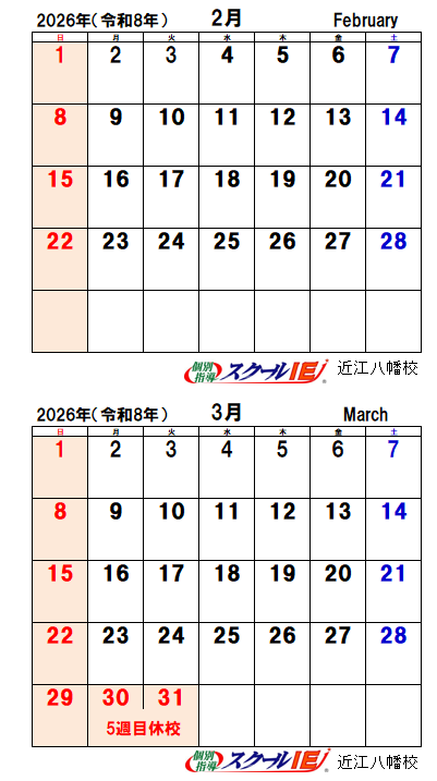 ※日曜日・祝日は、原則として休校となります(講習会時期は開校する場合があります)。