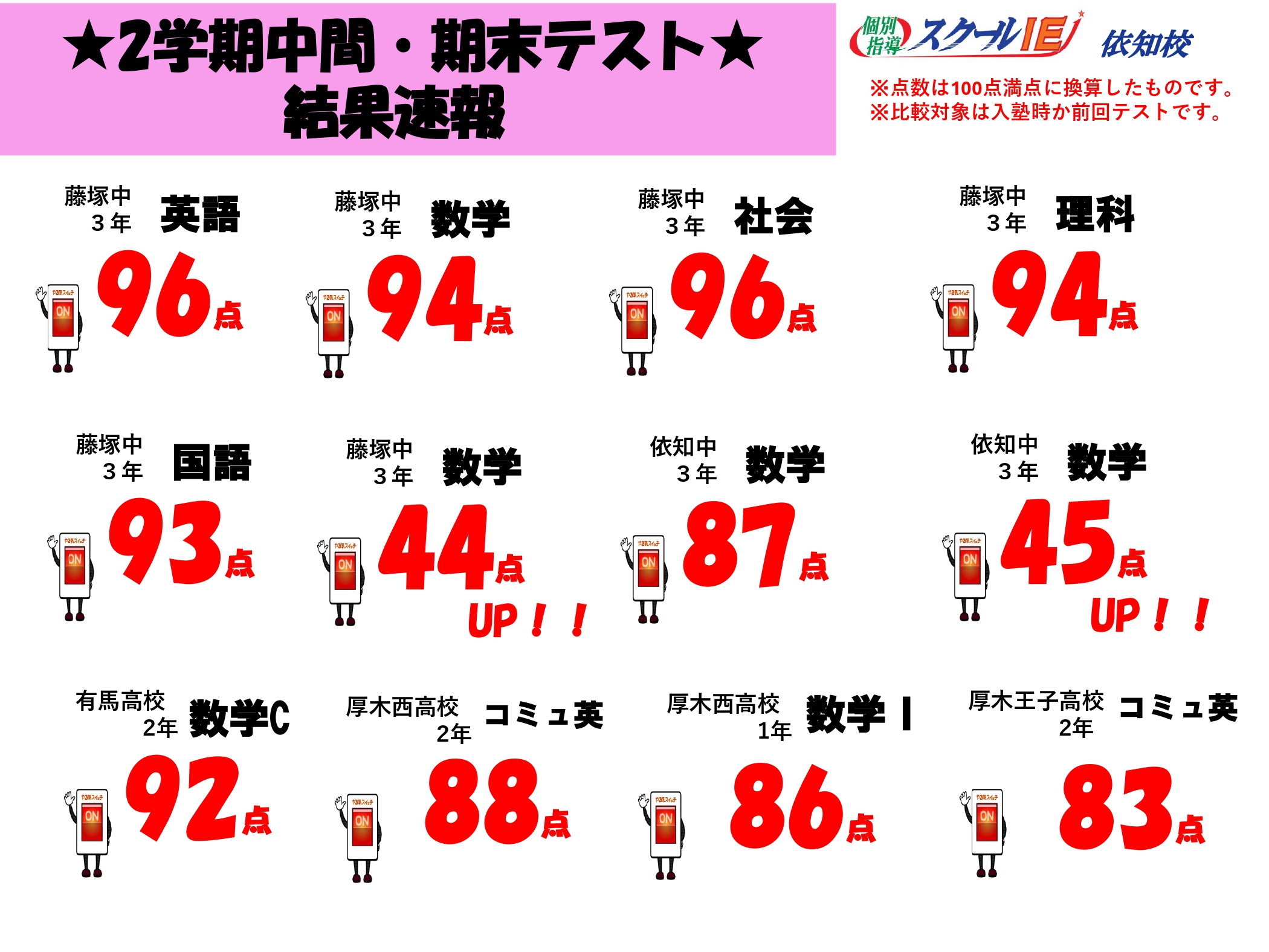 質問をすれば受講をしている教科や、自習時間に受講している教科以外の科目も私が理解するまで説明してくださり、定期テストでは予想以上の高得点を取る事が出来ました!