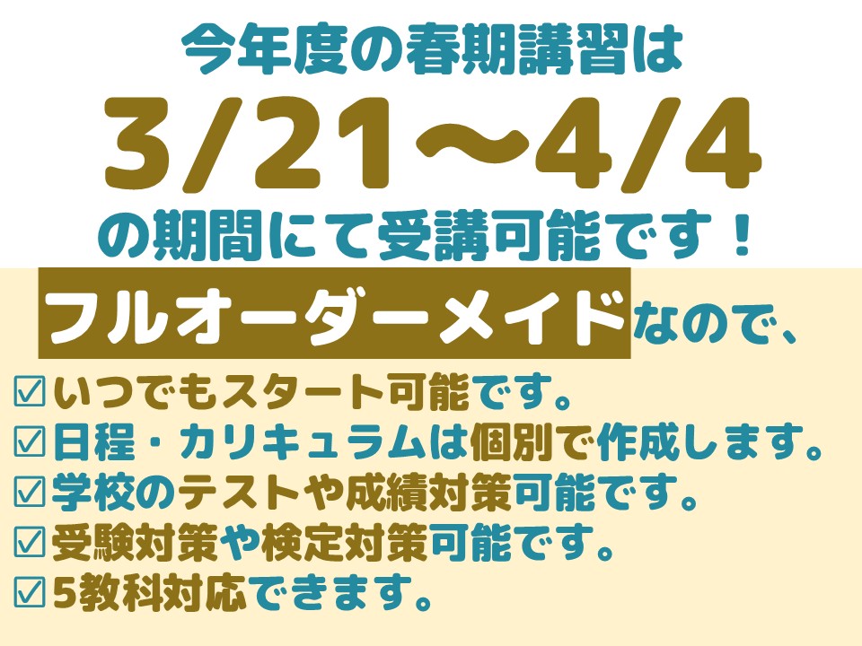 特に春期講習会は、次学年に向けて準備する大切な機会です。