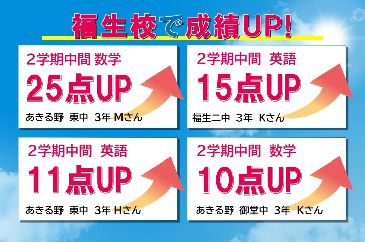 中学1年生では計算ミスなどが多く点数が伸びませんでしたが、塾の授業や宿題で繰り返し問題を解くことによってミスが減りました。これからも積み重ねを大事にします!