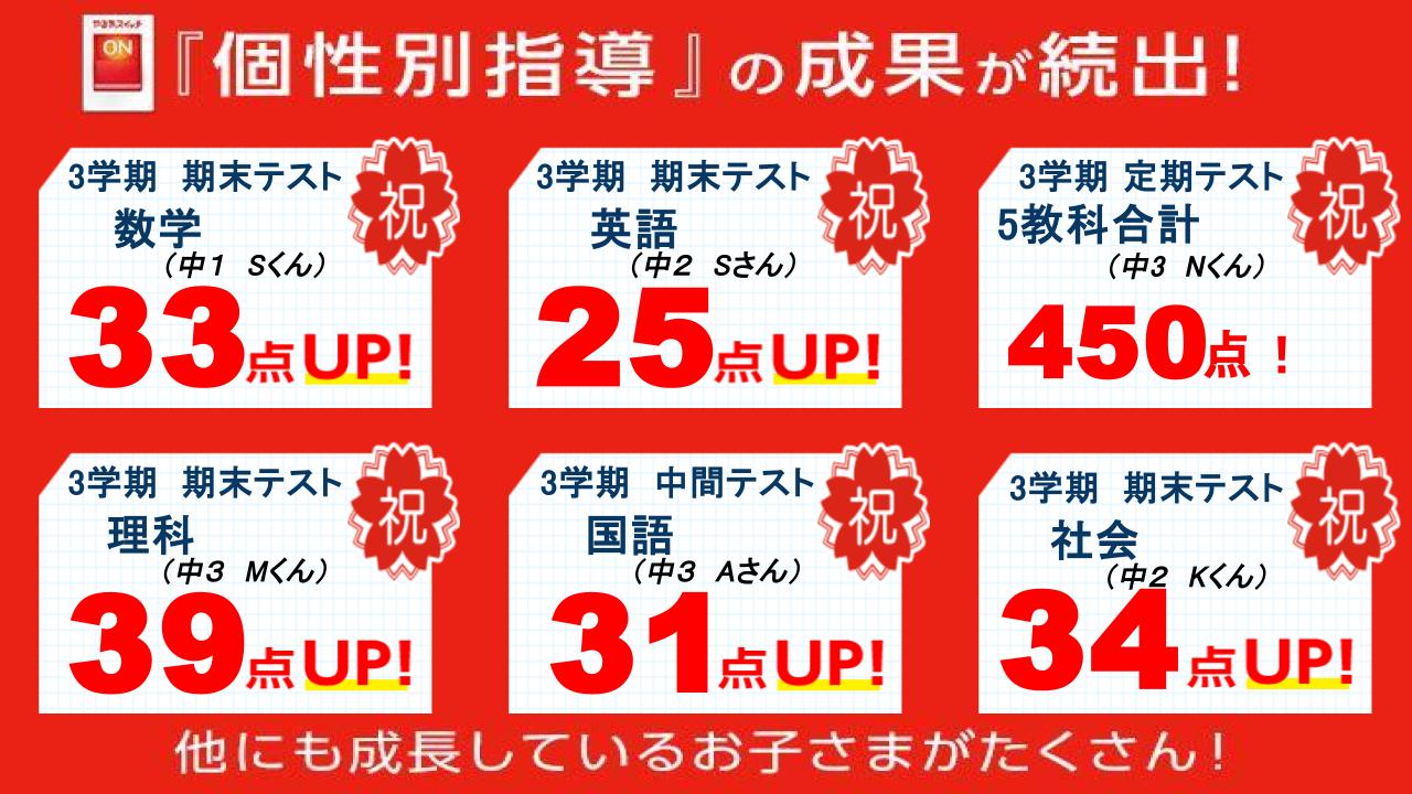 テストの点数が上がりました!