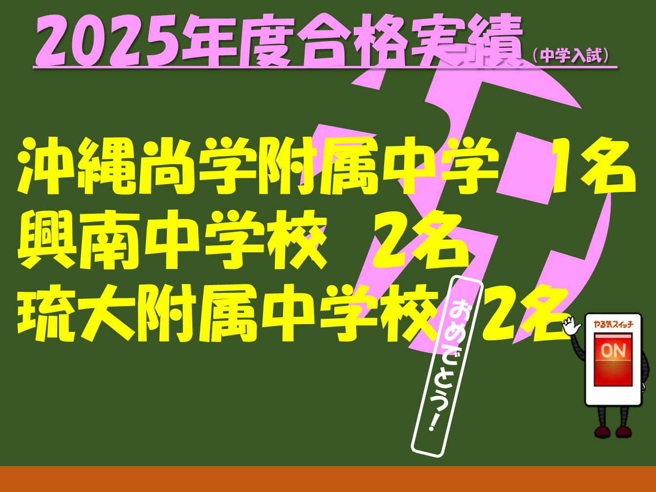 昭和薬科大学付属中学校、沖縄尚学高等学校付属中学校、興南中学校、志學館中等部、池田学園池田中学