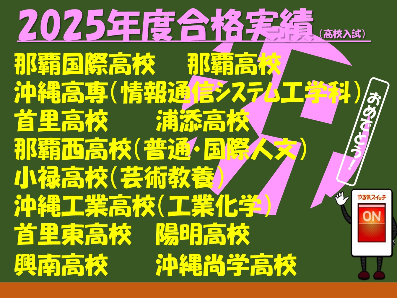 スクールIE 天久校では、受験に合格するための5教科全科目の