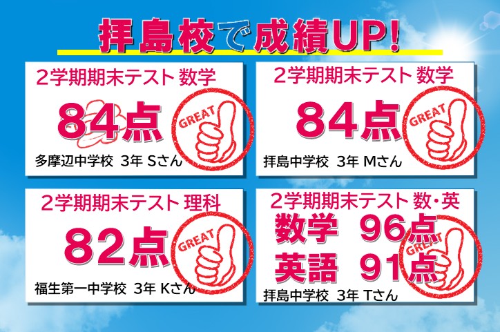 2学期期末テスト結果!!その他の生徒さんも多数成績UP!!