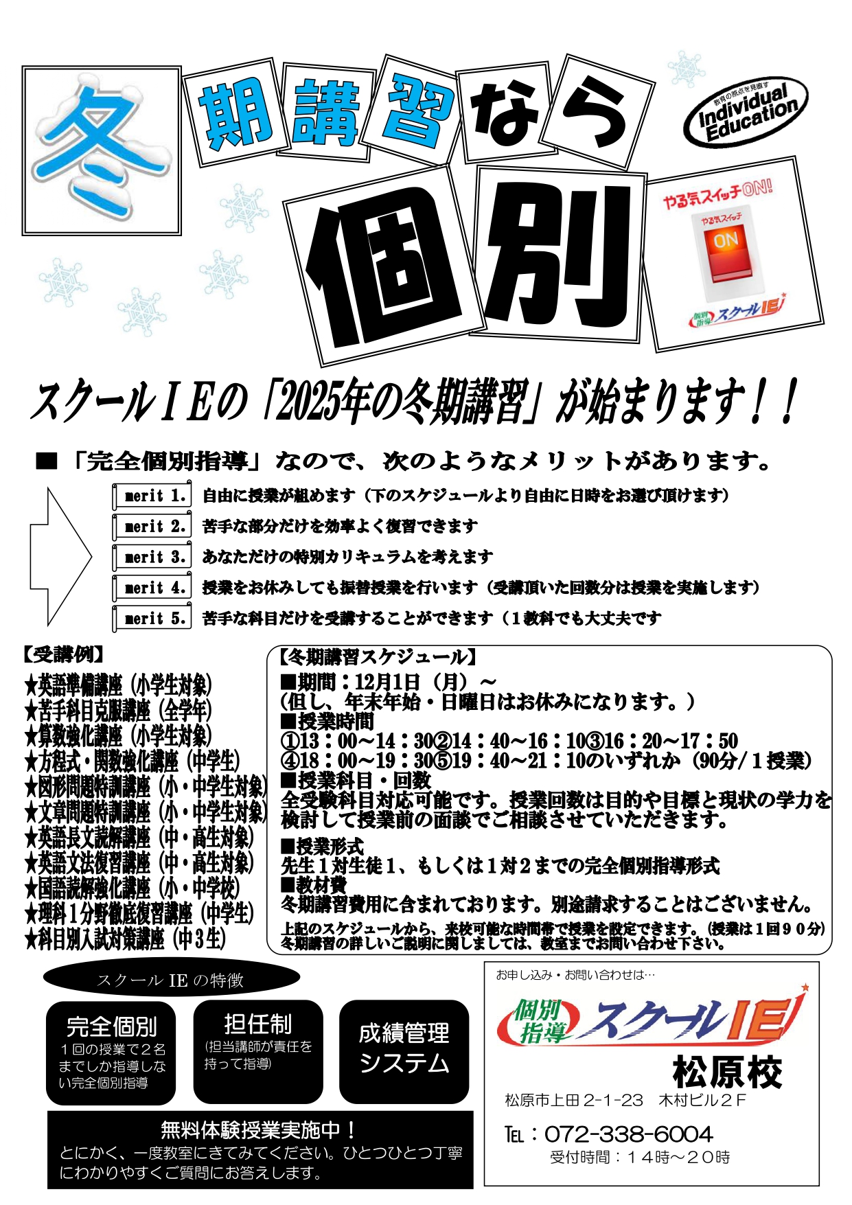 ◆スクールIE 松原校 冬期講習概要