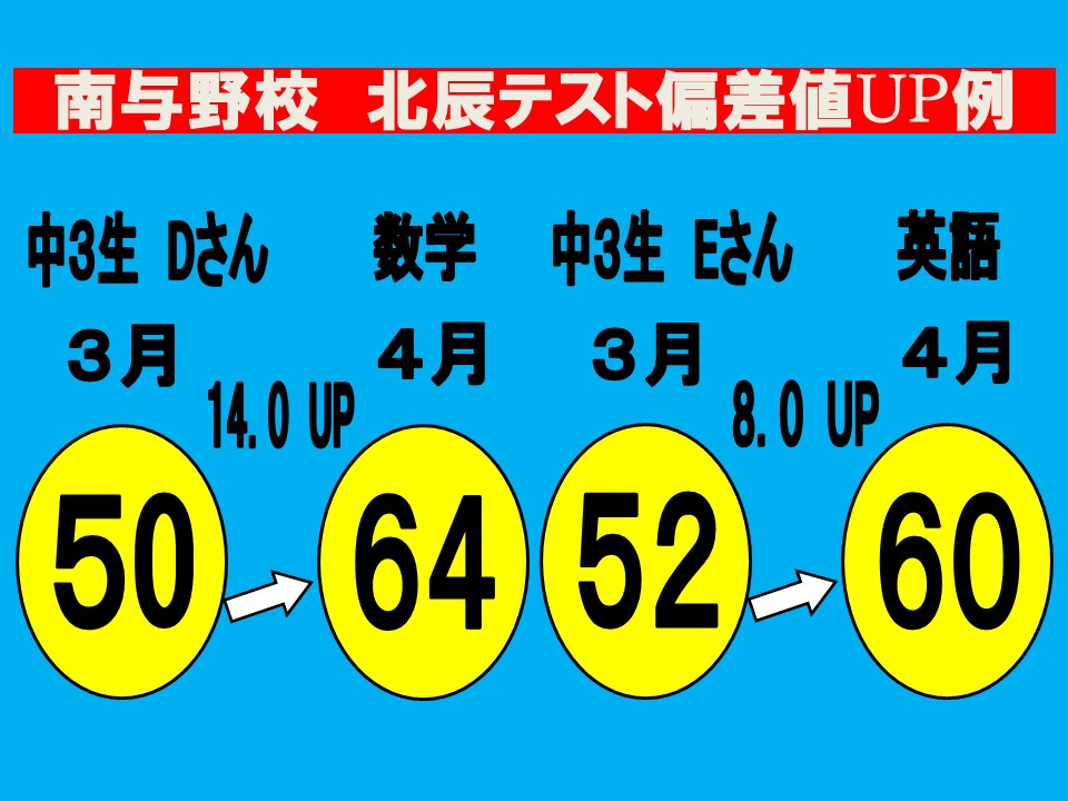 日々の学習ではなかなか成績が上がっている実感がわかないかもしれませんが、頑張って学習を続けることによって確実に努力が結果に現れてきます。