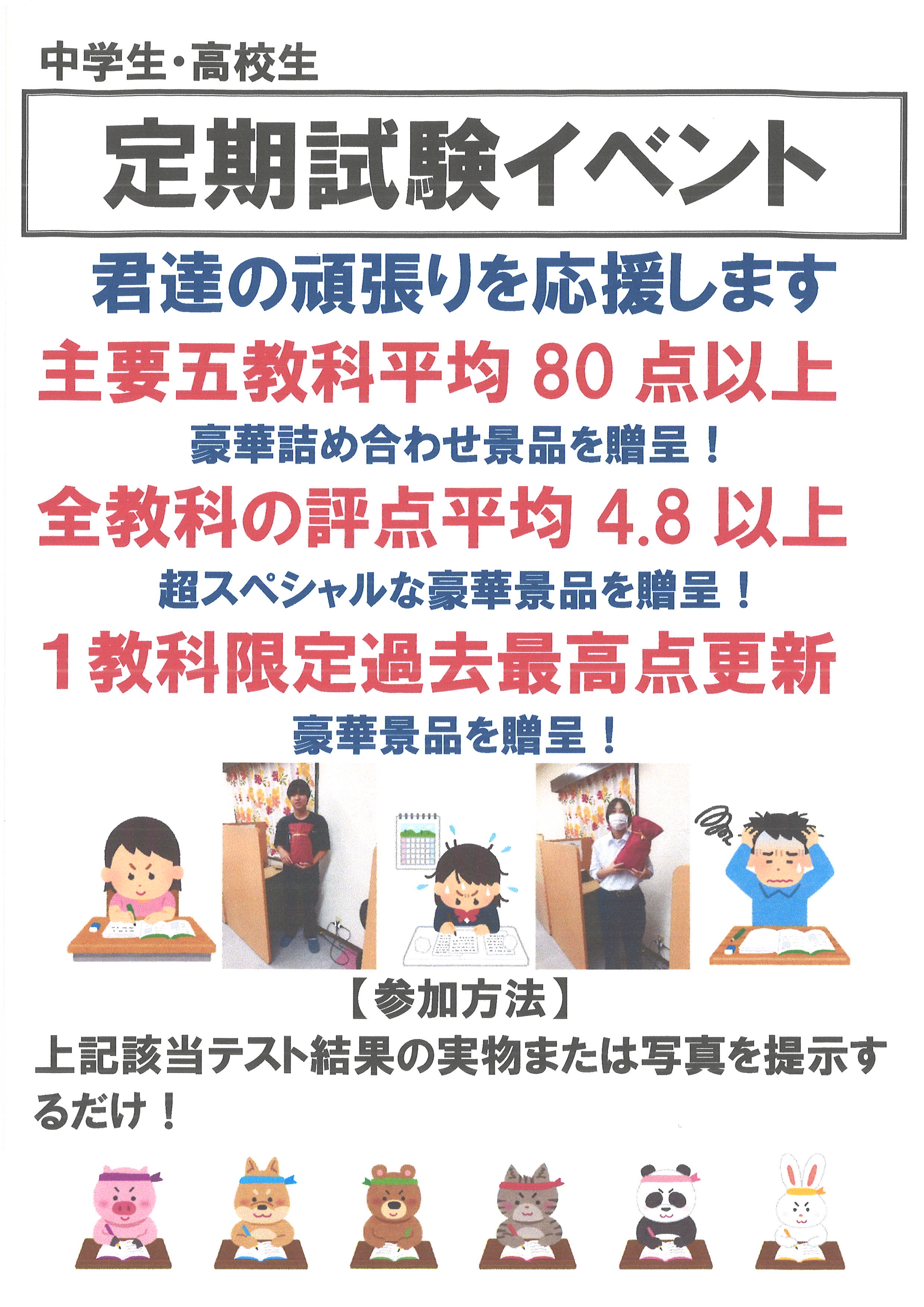 定期テストや学校成績での頑張りを応援しています!