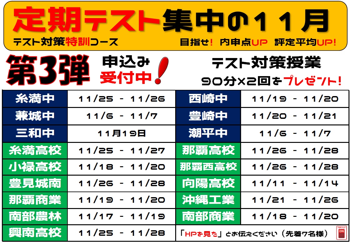 テスト対策授業90分×2回を無料で受講いただけるキャンペーンを実施中です。