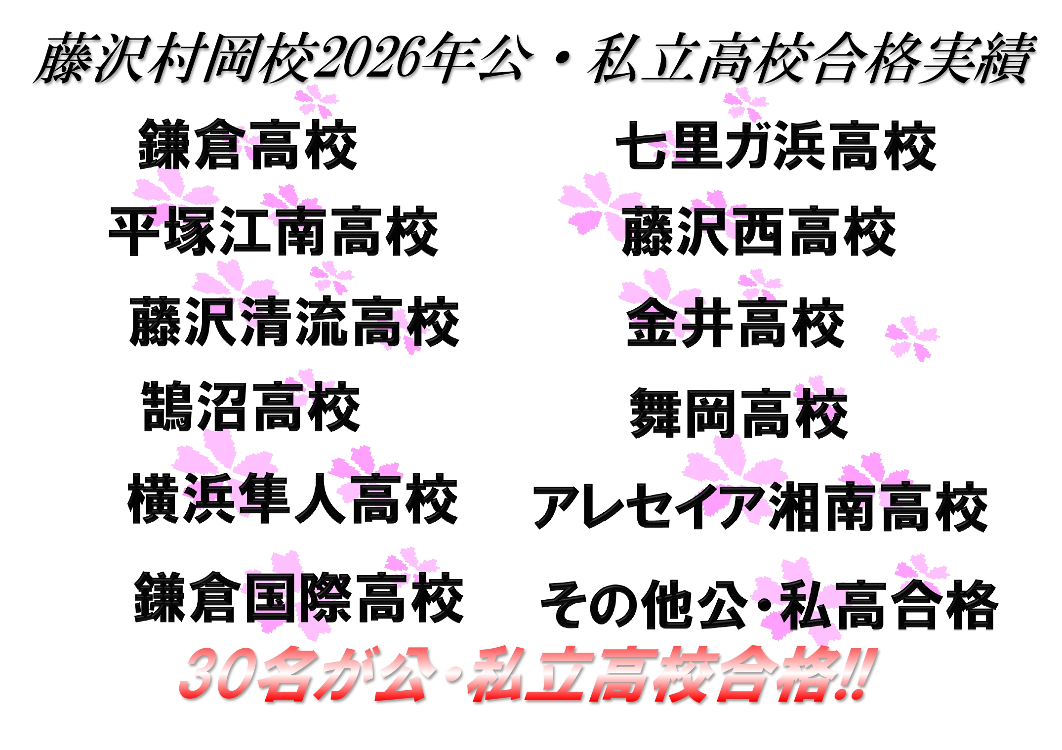 特に村岡中学校や藤が岡中学校、深沢高校、藤沢西高校、大船高校など近隣校の指導には定評をいただいています。