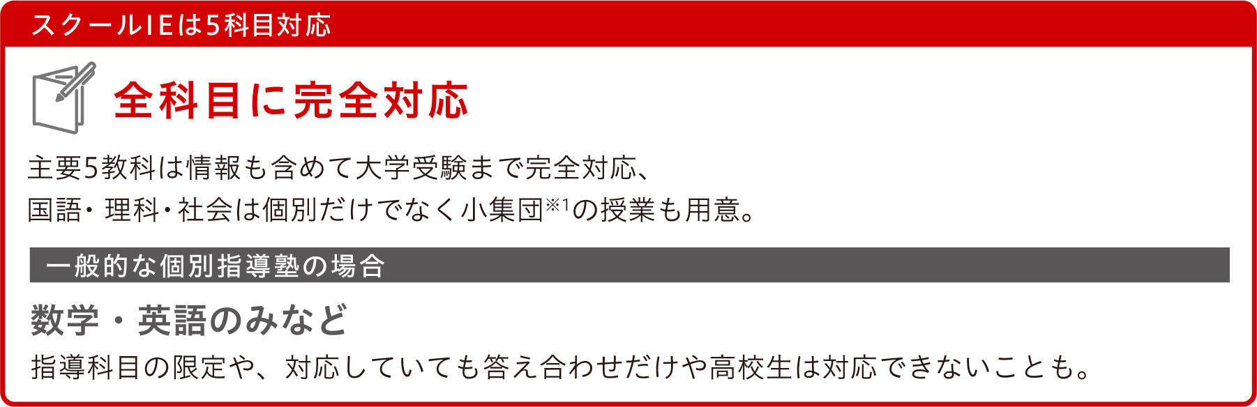 お子さまの個性に合わせたスクールIEの個別指導を
