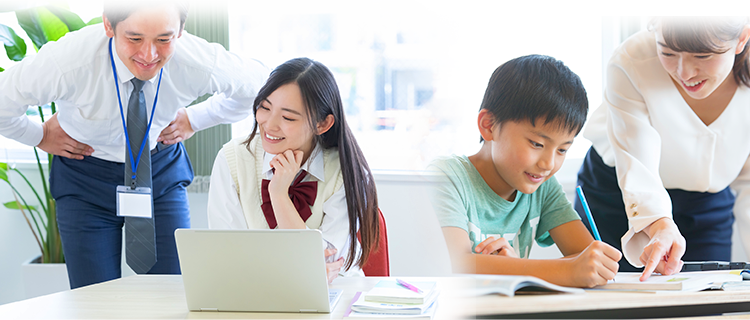 お子さまの個性を見極め、一人ひとりに合ったサポートを行うことで、自らの意志で勉強できる「やる気」を引き出し、目標達成へ。厳しい採用基準をクリアした講師は、指導スキルに加え、子どもたちとの信頼関係を円滑に築くためのコーチングスキルも習得します。